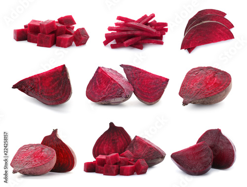 © New Africa, Fototapeta premium Set with cut fresh beets on white background