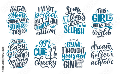 © Artlana, Fototapeta premium Set with funny hand drawn lettering compositions. Cool phrases for print and poster design. Inspirational feminism slogans. Girl power quotes. Greeting card template. Vector