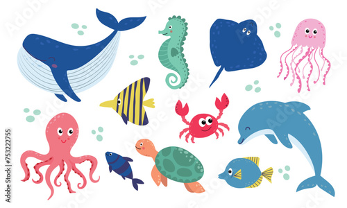 © Idressart, Naklejka premium Set with hand drawn sea life animals.