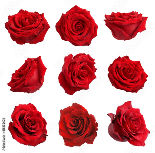 © New Africa, Naklejka premium Set with red rose buds isolated on white