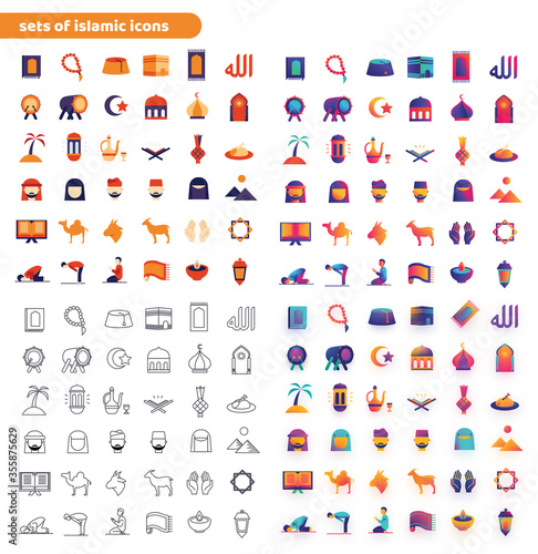 Fototapeta premium Sets of islamic icons with four different styles.
