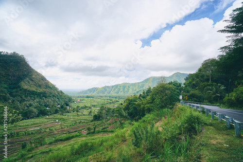 © luengo_ua, Fototapeta premium Settlement among rice terraces and fields near mountain ridges. Bali, Indonesia.