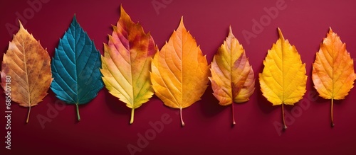 © AkuAku, Obraz premium Seven autumn leaves with vibrant colors.