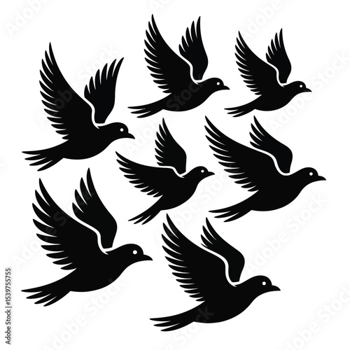 © Jayeda akter, Obraz premium Seven Black Birds Flying Silhouette Vector Graphic flock 1