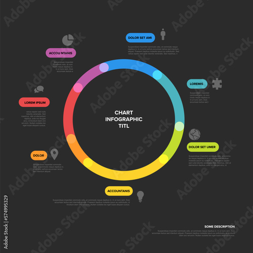 © Petr Vaclavek, Obraz premium Seven blocks pie chart dark multipurpose infographic template