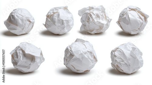 Fototapeta premium Seven crumpled white paper balls arranged artistically on a clean surface,...