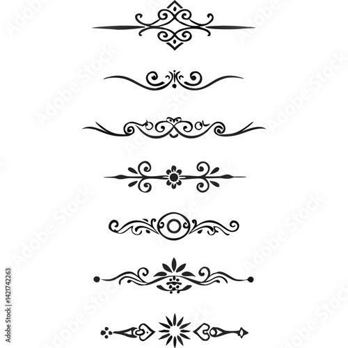 © SAHINUR, Fototapeta premium Seven elegant black decorative dividers, perfect for design projects.
