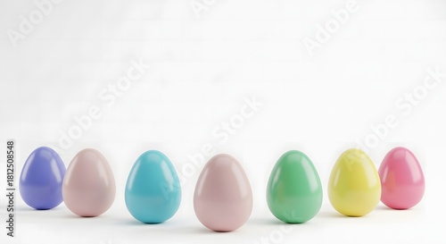 © NEUVANJOSE, Obraz premium seven pastel colored easter eggs lined up against a white background