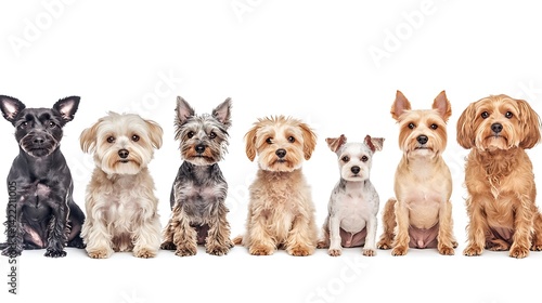 © puji, Obraz premium Seven Small Dogs Sitting Row.