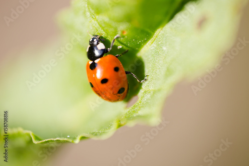 Naklejka premium Seven-spot ladybird (Coccinella septempunctata) extreme macro.