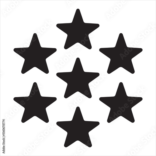 © Uzzal, Obraz premium Seven Stars Black Silhouettes Forming Circular Arrangement On White Background.