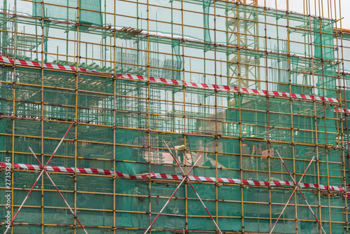 Fototapeta premium Several construction workers are under construction in the scaffolding fence...