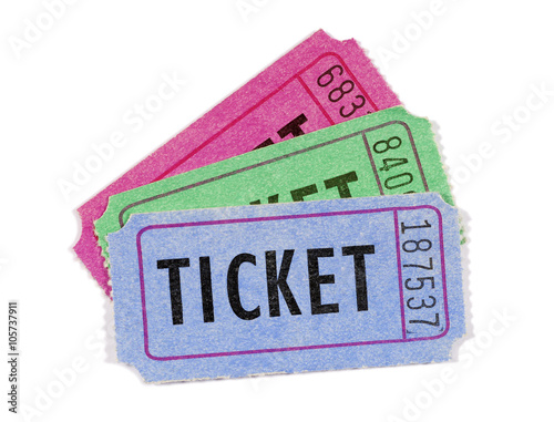 © david_franklin, Naklejka premium Several different color movie cinema theater or raffle ticket stub isolated on white background photo