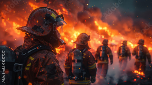 © Matthew, Naklejka premium Several firefighters go offensive for a fire attack