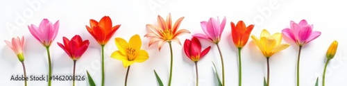 Naklejka premium Several freesia stems, various colors, against pure white , minimal, vibrant