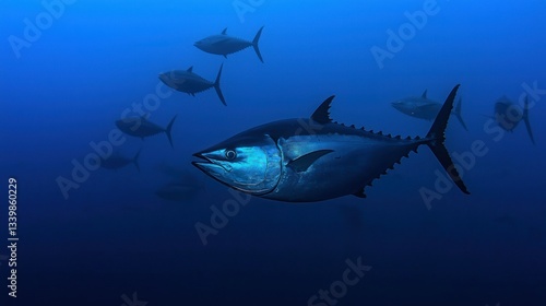 Naklejka premium Several large fish swimming together underwater in deep ocean water