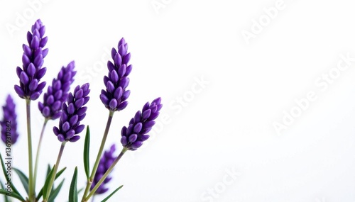 Naklejka premium Several lavender sprigs, vibrant purple hues, against stark white , summer, flower, purple