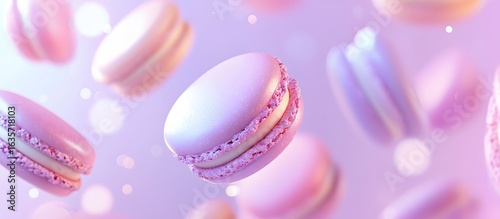 © tetxu, Obraz premium several macaroons on a lavender background