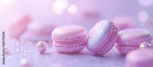 © tetxu, Obraz premium several macaroons on a lavender background, copy space