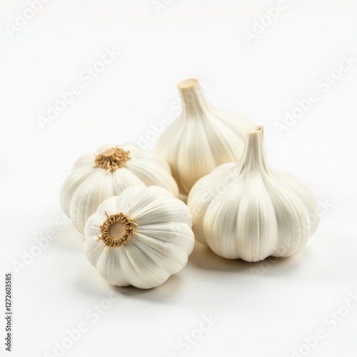 Obraz premium Several pristine white garlic bulbs, isolated on white , vegetable, fresh