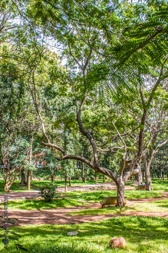 © E. M. Winterbourne, Obraz premium Several Trees Line the Dirt Path in Cubbon Park in Bangalore, India
