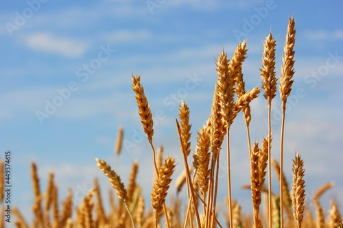 © Sergey, Fototapeta premium several yellow ears of wheat close up in the field