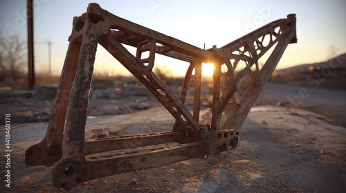 Fototapeta premium Severely damaged motorcycle frame against-2 - discarded damage wreckage...