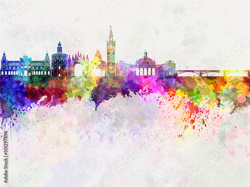 Fototapeta premium Seville skyline in watercolor background