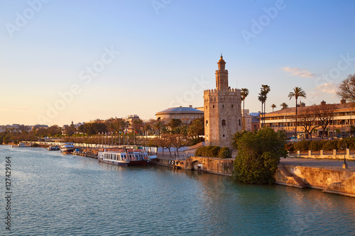 Fototapeta premium Seville sunset skyline torre del Oro in Sevilla