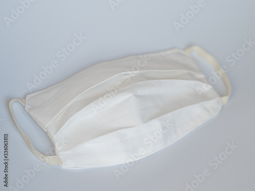 Obraz premium Sewing a protective medical mask to protect against COVID-19. Handmade (Do-it-yourself) cotton medical mask.