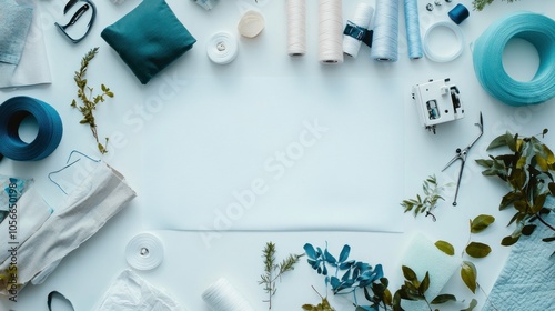© yasna , Fototapeta premium Sewing Supplies Flat Lay