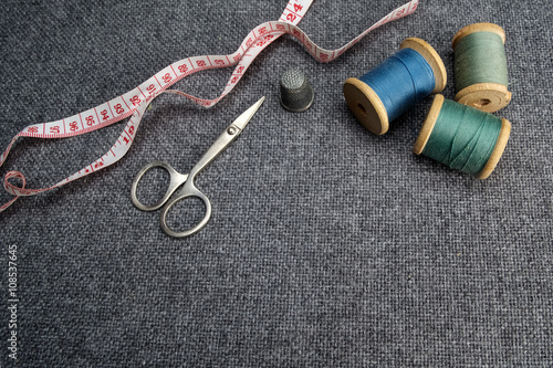 © vetre, Naklejka premium Sewing supplies on the fabric