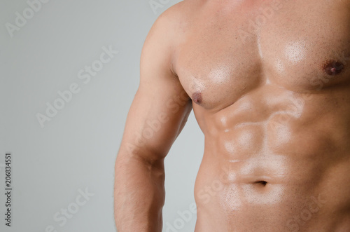 © vladorlov, Fototapeta premium Sexy athletic man. Gray background.