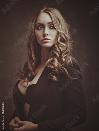 © Dmytro Tolokonov, Fototapeta premium Sexy beauty. Positive expressed young woman posing for camera, studio female portrait