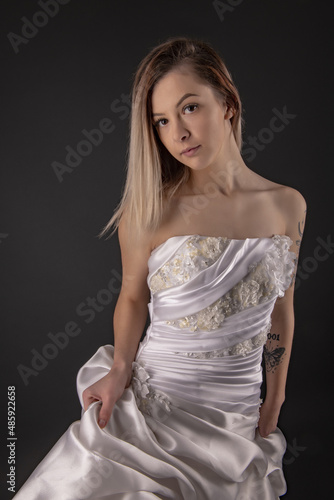 © muro, Fototapeta premium Sexy Bride Back Wedding Dress.
