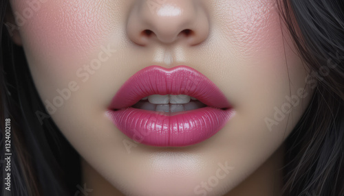 © paulmalaianu, Fototapeta premium Sexy female pink lips closeup.