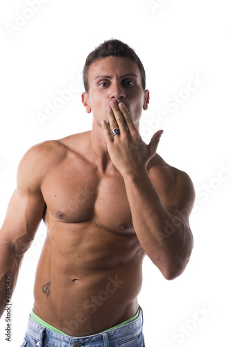 © theartofphoto, Fototapeta premium Sexy handsome shirtless man blowing a kiss