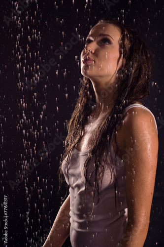 © Demian, Obraz premium Sexy kobieta w białej koszuli pozowanie pod wodą