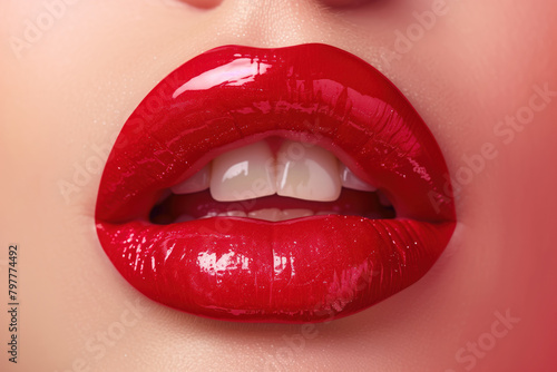 Obraz premium Sexy Lips, Glossy Red Lipstick, Generative AI