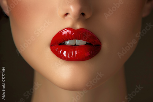 © Vig, Obraz premium Sexy Lips, Glossy Red Lipstick, Generative AI