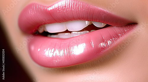 Obraz premium sexy lips with a sparkling pink lip gloss