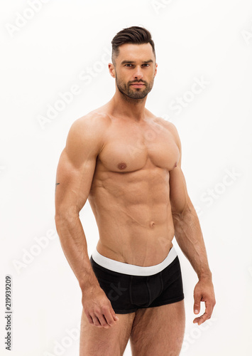 © kiuikson, Fototapeta premium Sexy man in underwear isolated on white background