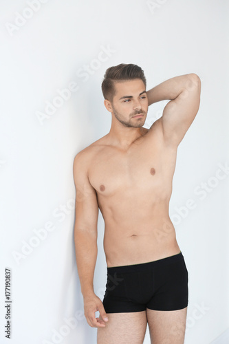 Fototapeta premium Sexy man in underwear on white background