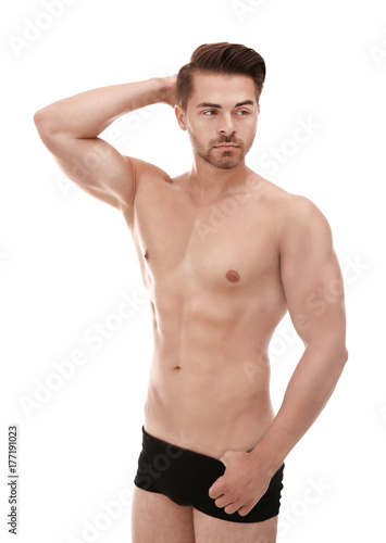 © Africa Studio, Fototapeta premium Sexy man in underwear on white background