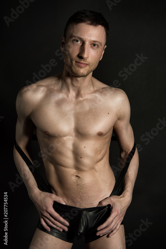 © vladorlov, Fototapeta premium Sexy man without a shirt. Black background.