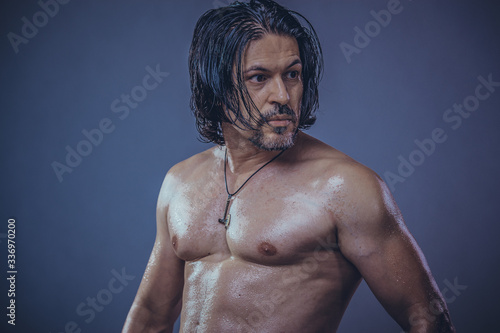 © Nicat, Obraz premium sexy muscular body model portrait of a young man