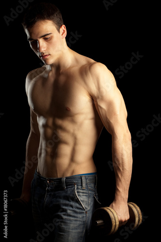 © lixai, Fototapeta premium Sexy Muscular Man with Dumbell