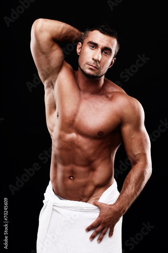 © Drobot Dean, Fototapeta premium Sexy muscular sportsman over black background