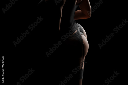© PixlMakr, Naklejka premium Sexy plus size model in black lingerie