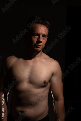 © Collins Photography, Fototapeta premium Sexy portrait of muscular handsome topless male isolated against a black background